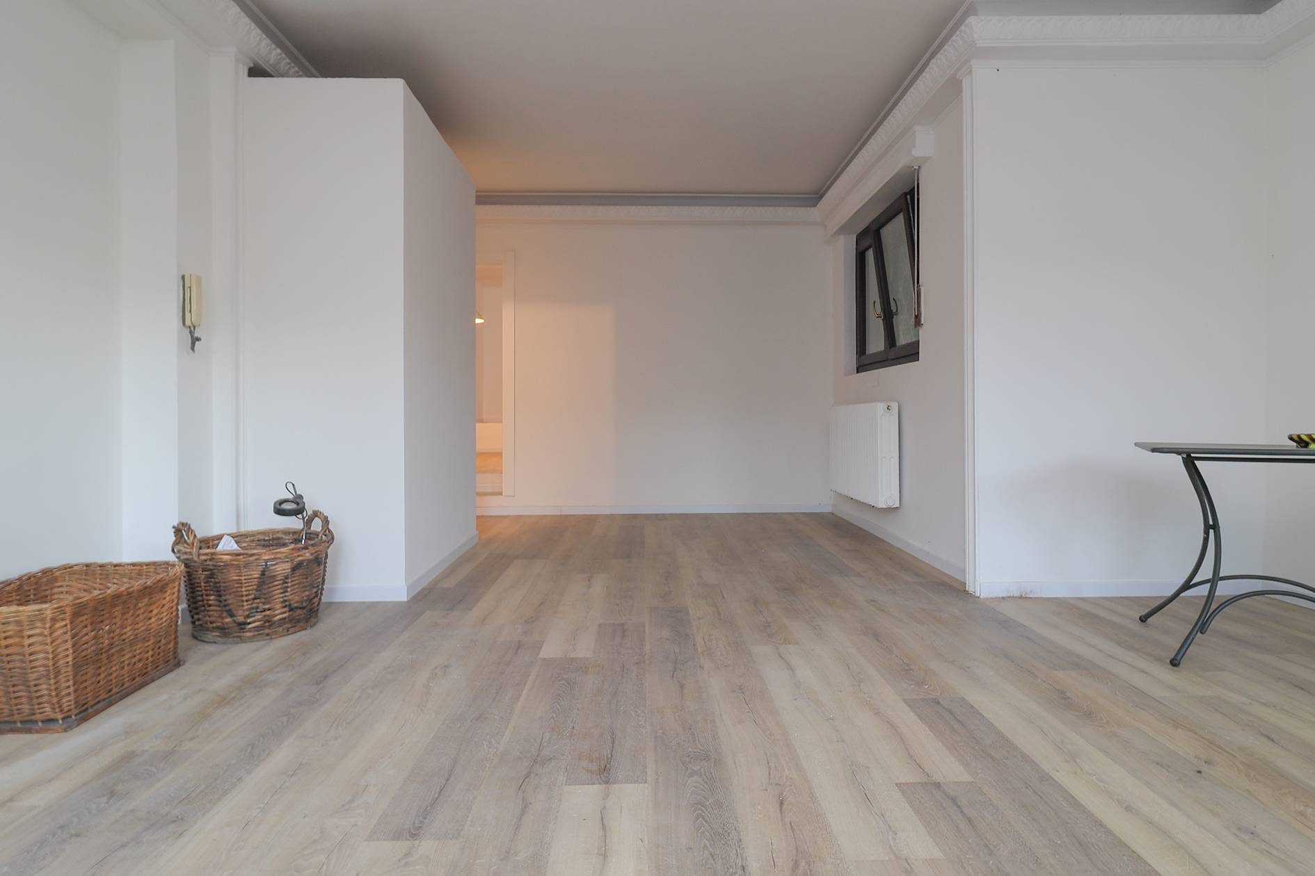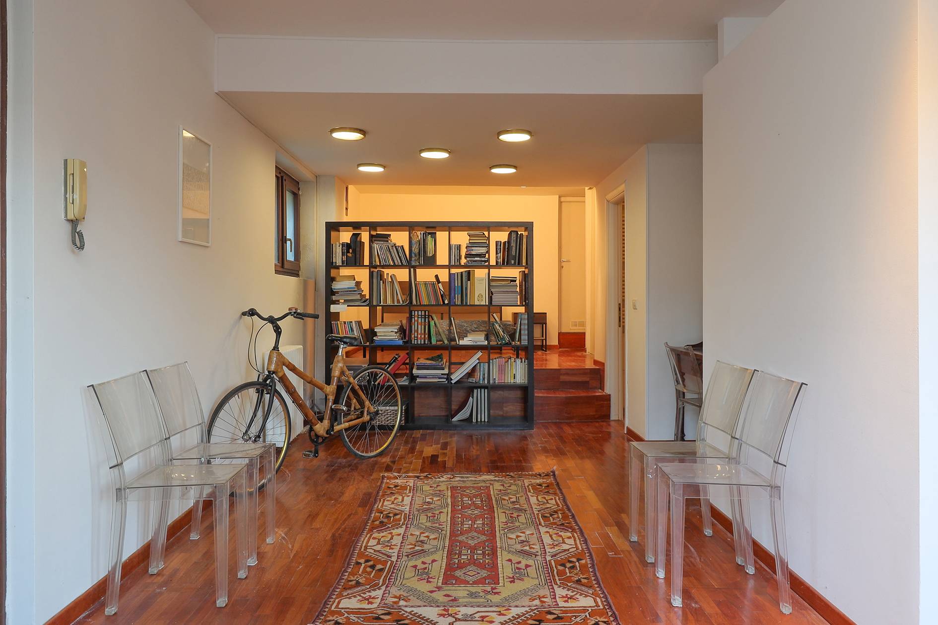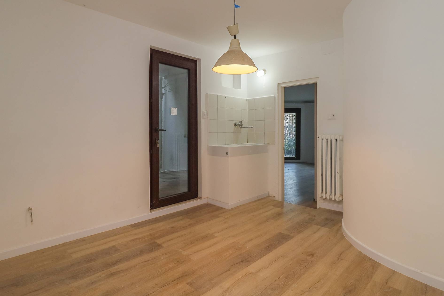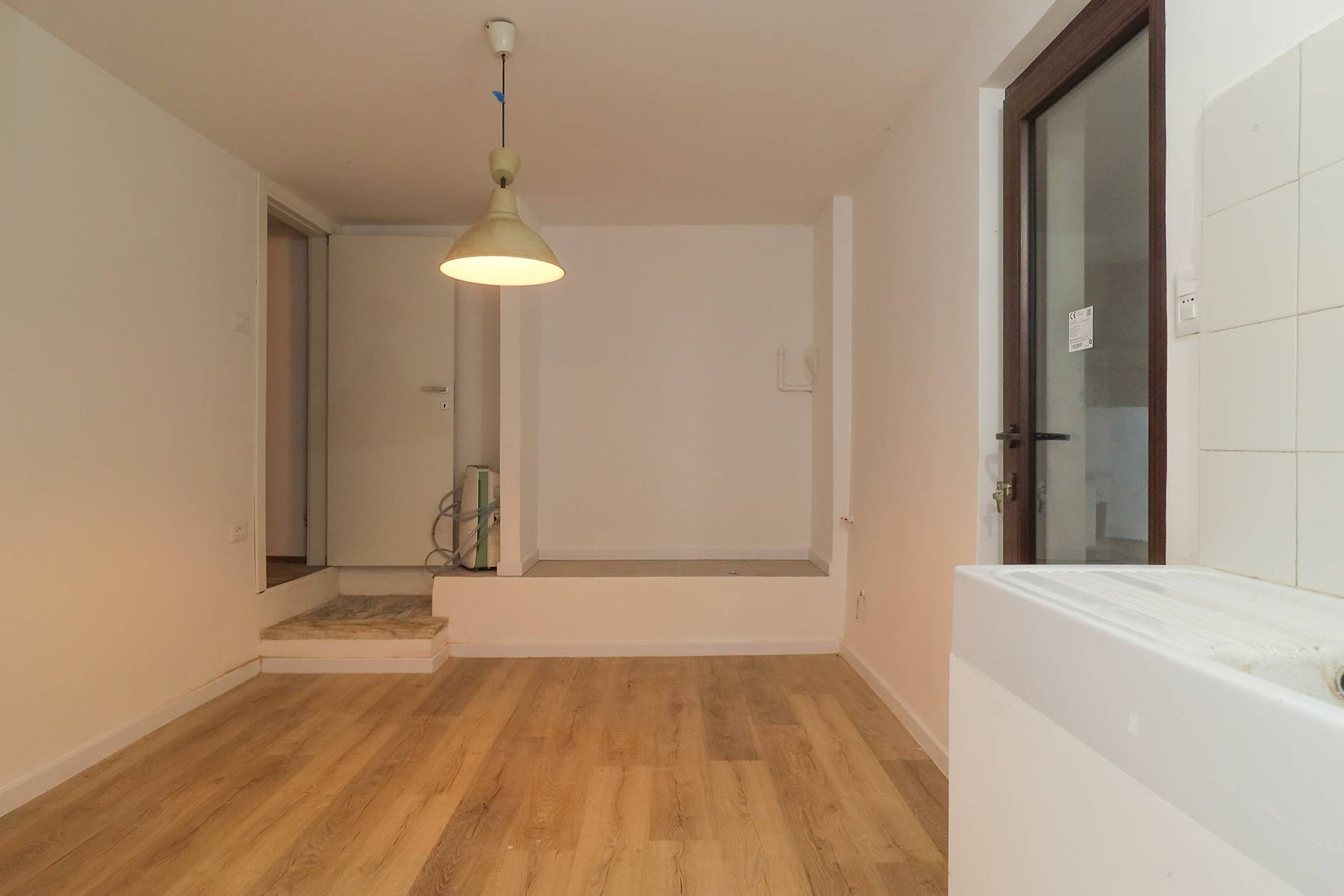 La distribuzione degli ambienti, attualmente prevede un grande soggiorno con cucina a vista e ampia zona notte (con possibilità di creare due camere), due bagni e locali accessori. Grande valore aggiunto è dato dalla presenza del terrazzo che offre una piacevole vista sulla città.