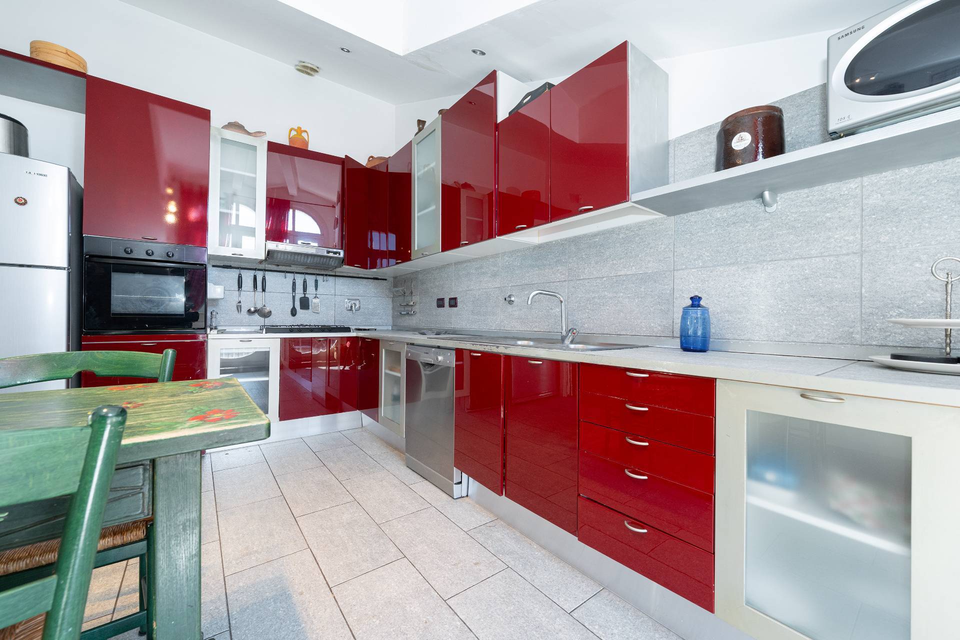 L'immobile conserva soffitti con travi a vista, camini , boiserie, perfettamente integrati con impianti moderni, ascensore con accesso diretto al piano seminterrato per accedere alla cantina e al box auto con richiesta a parte di € 25.000,00