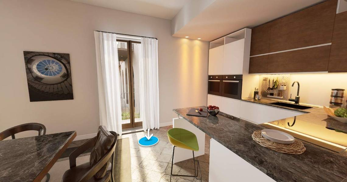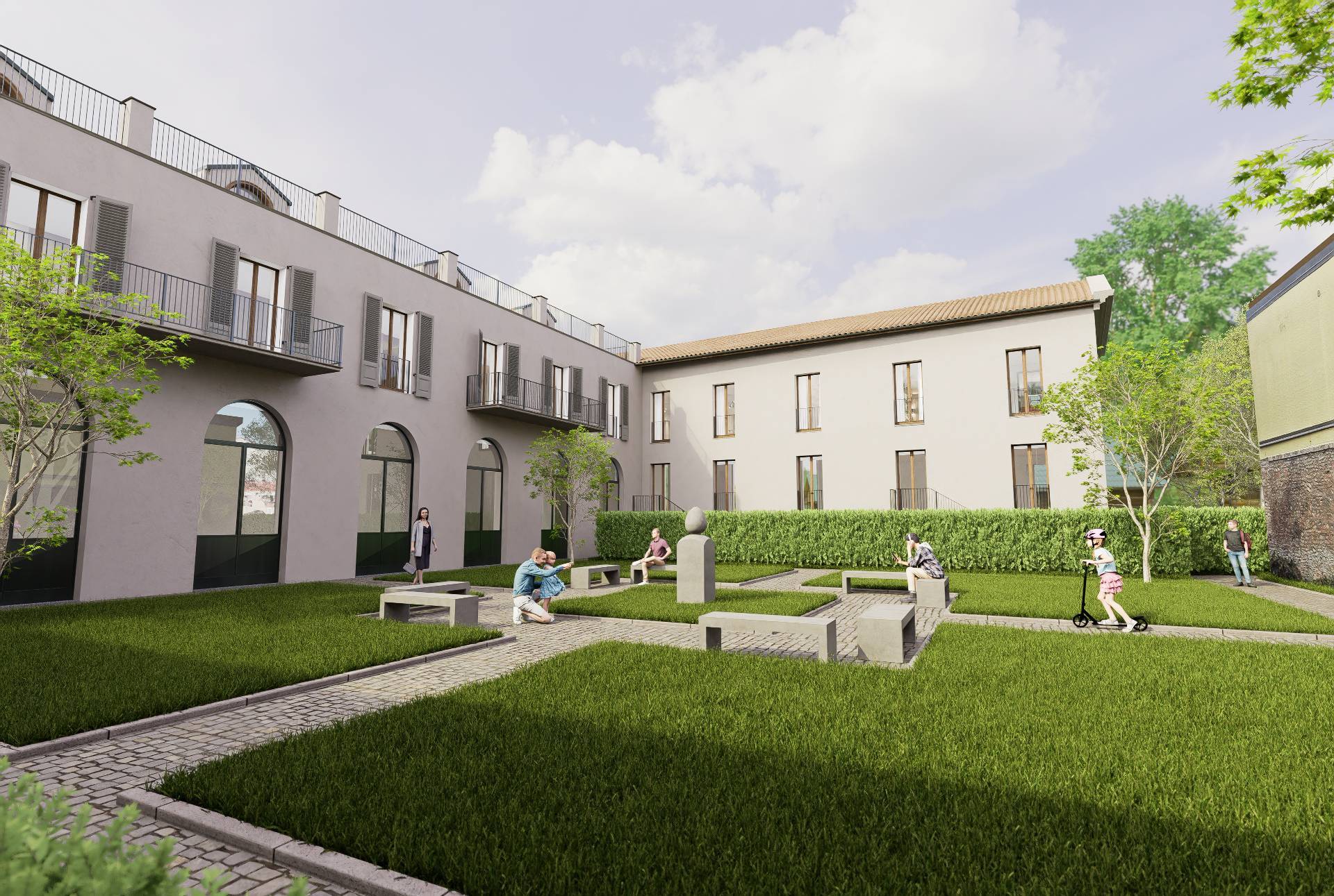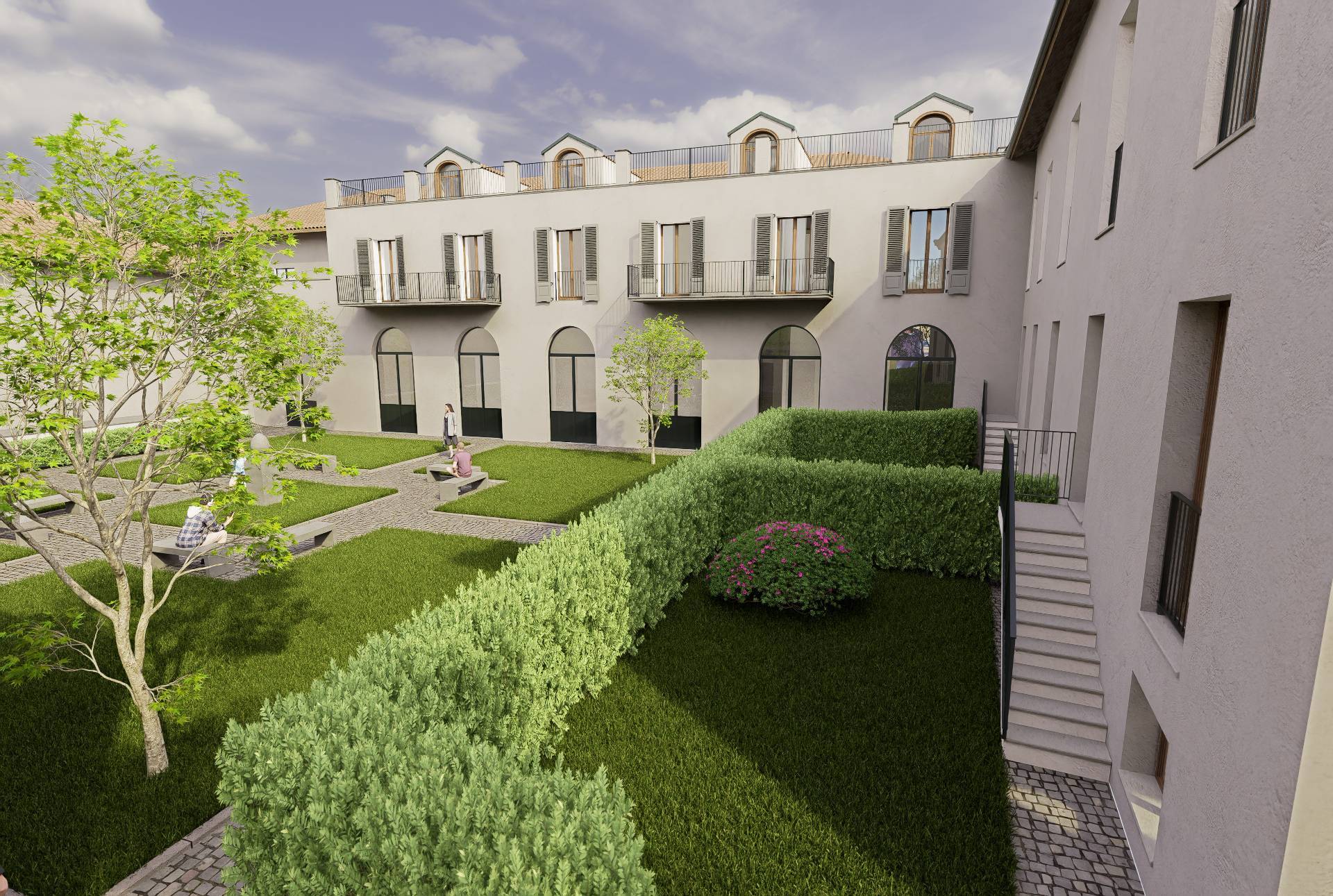 In un contesto storico e riservato, affacciato sull'elegante chiostro interno, proponiamo un raffinato Duplex con Giardino esclusivo pertinenziale.