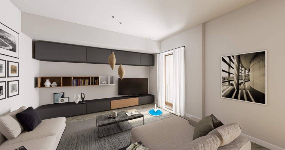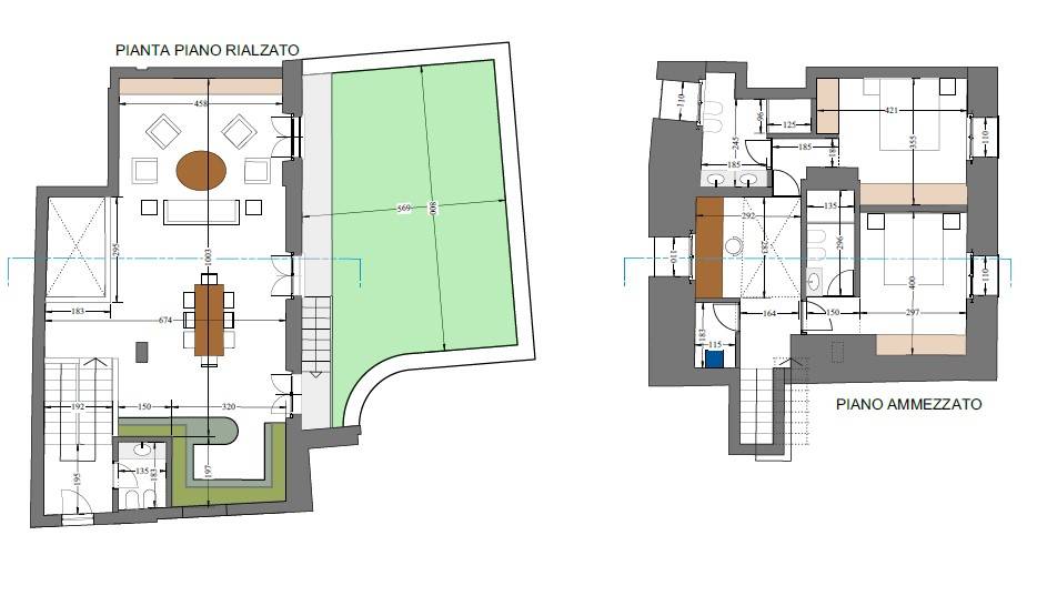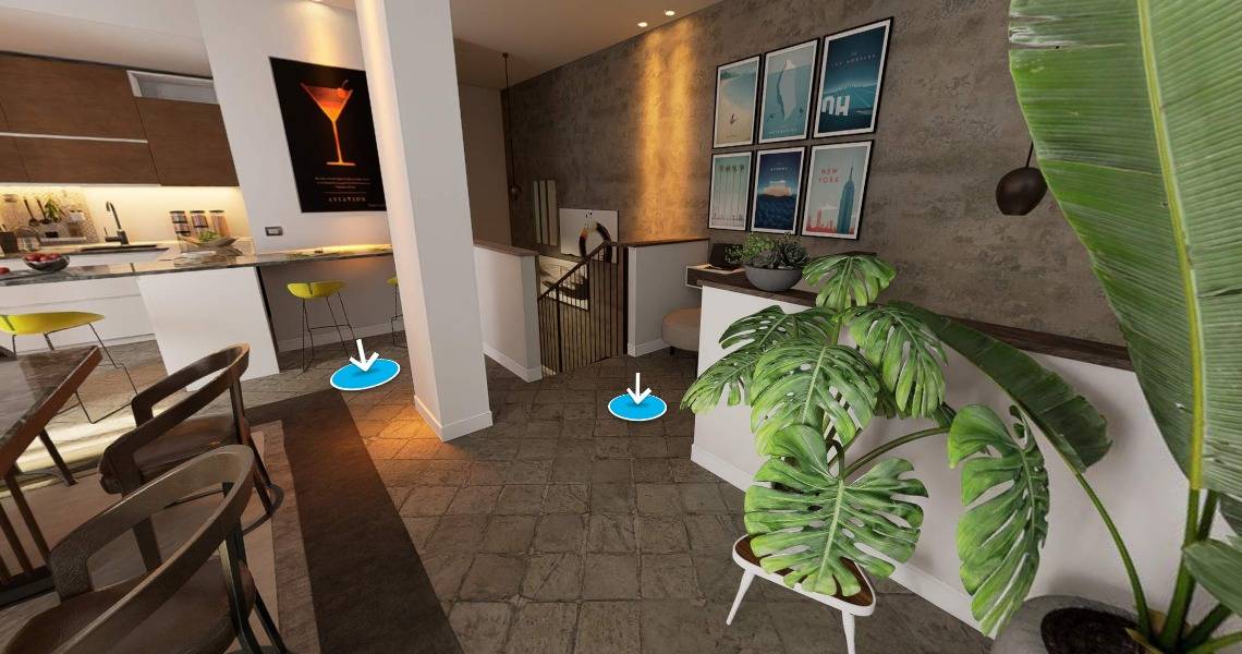 Il piano rialzato si apre su un ampio e luminoso soggiorno living con angolo cottura, ideale per momenti di convivialità.